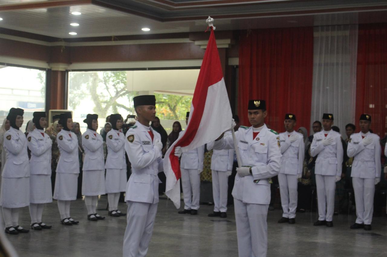 Upacara Pengukuhan ditandai dengan pemasangan Sabuk berwarna Hijau kepada perwakilan anggota Paskibraka yang akan bertugas mengibarkan Bendera Merah Putih pada peringatan HUT RI Ke-80 Tahun Kemerdekaan Indonesia di Kabupaten Tanah Laut.
