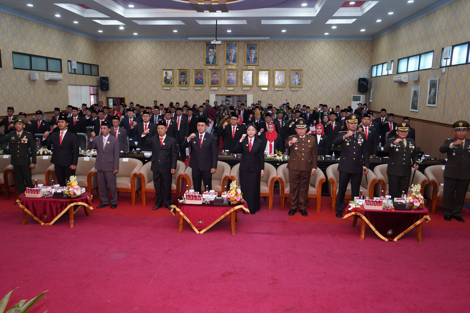 Selanjutnya, seluruh peserta mengikuti rangkaian rapat paripurna, termasuk pembukaan oleh Ketua DPRD Kota Blitar, menyanyikan lagu kebangsaan Indonesia Raya, mengheningkan cipta dan mendengarkan pidato kenegaraan Presiden RI H. Prabowo Subianto yang disampaikan secara virtual.
