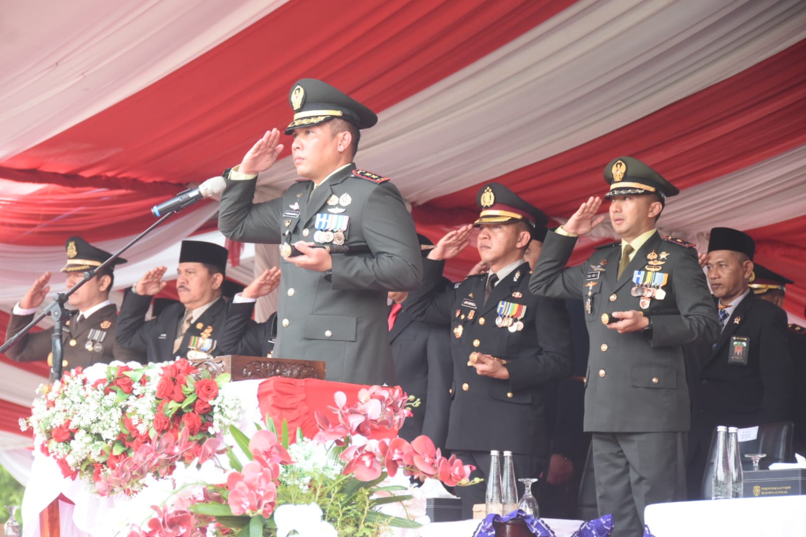 Bertindak sebagai Inspektur Upacara Komandan Kodim (Dandim) 1002/Hulu Sungai Tengah, Letkol Inf Ardiansyah Okta Putra Siregar dan Komandan Upacara, Letda Inf Fitri Widiyanto. Danton I Kipan B Yonif 621/Manuntung serta Perwira Upacara Kapten Inf Subhan Pasiterdim 1002/Hulu Sungai Tengah.