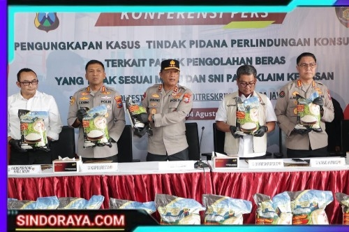 Sindoraya.com, Sidoarjo, – Polda Jawa Timur melalui Satgas pangan Polresta Sidoarjo berhasil mengungkap praktik produksi beras premium tidak sesuai standar mutu yang mencantumkan label SNI dan Halal secara tidak sah.