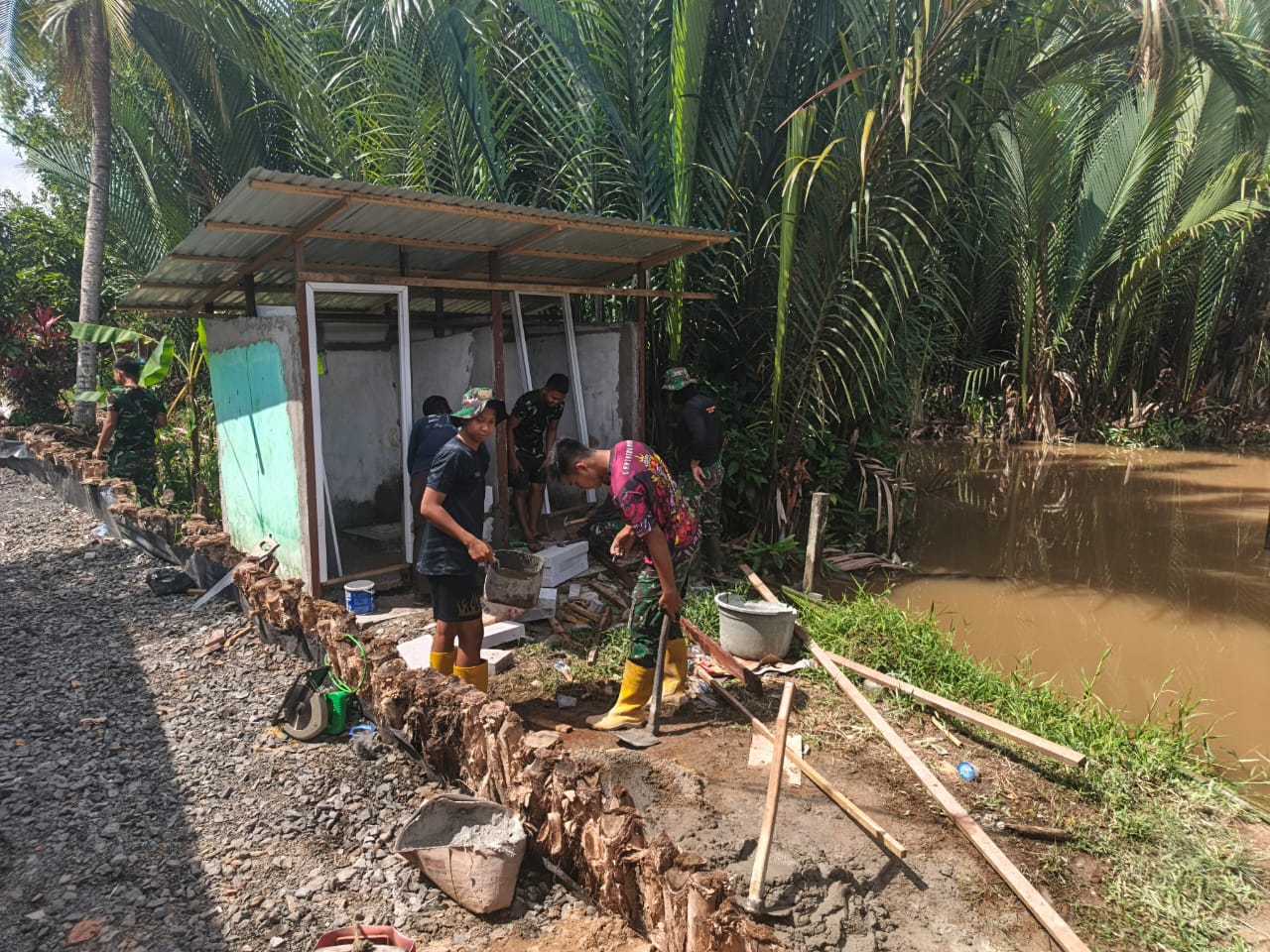 Banjarmasin – Kerja keras Satgas TNI Manunggal Membangun Desa (TMMD) ke-125 Kodim 1007/Banjarmasin terus membuahkan hasil. Progres pembangunan fasilitas mandi, cuci, kakus (MCK) di Kuin Kecil, Kelurahan Mantuil, kini telah memasuki tahap pemasangan dinding dan pintu, Rabu (13/8/2025).