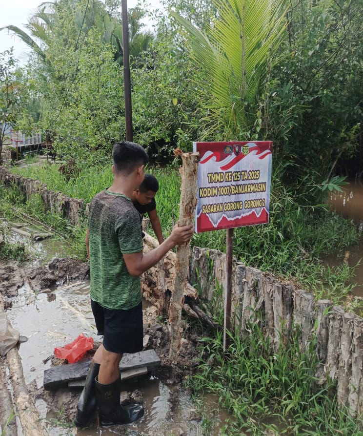 BANJARMASIN – Mengisi akhir pekan dengan penuh semangat, Satgas TNI Manunggal Membangun Desa (TMMD) ke-125 Kodim 1007/Banjarmasin terus melanjutkan pemasangan siring badan jalan di wilayah Kuin Kecil, Kelurahan Mantuil, Minggu (10/8/2025).