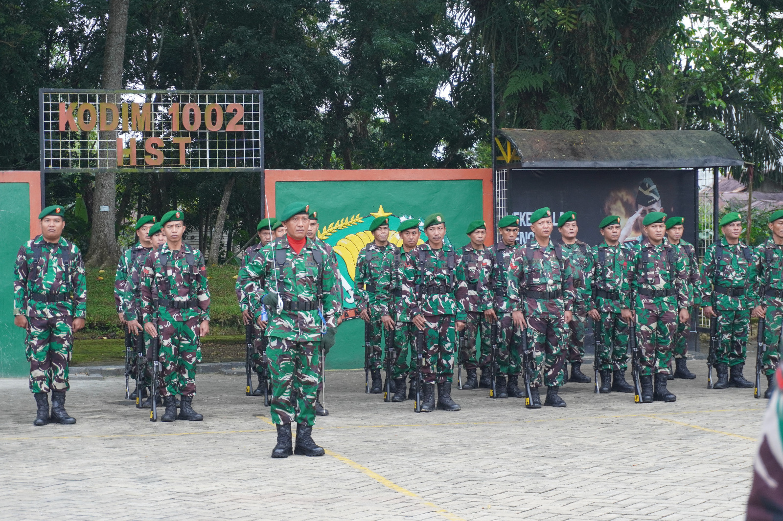 Bertindak sebagai inspektur upacara, Dandim 1002/HST Letkol Inf Ardiansyah Okta Putra Siregar, S.I.P., membacakan amanat Pangdam XXII/Tambun Bungai Mayjen TNI Zainul Arifin, S.A.P., M.Sc.