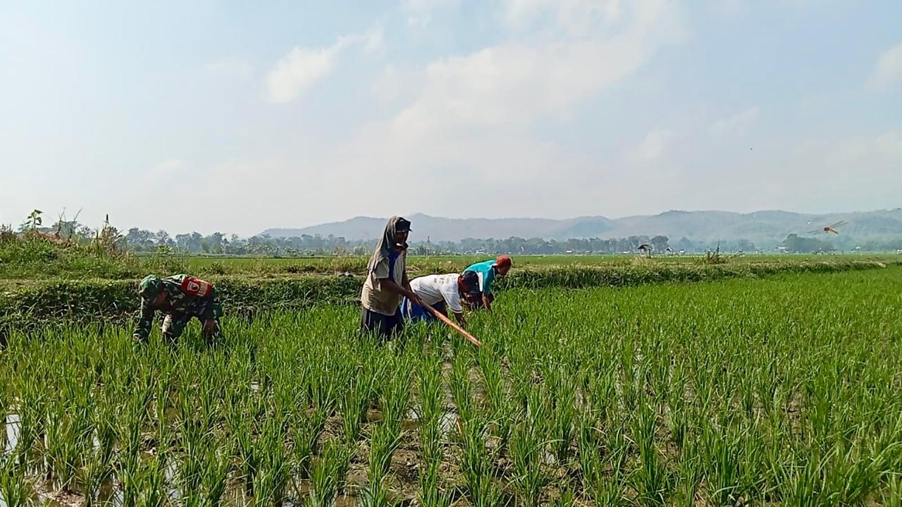 Kegiatan pendampingan dilakukan oleh Pelda Dedy Puji Ch, yang merupakan Bati Komsos sekaligus Babinsa Desa Rejowinangun. Ia bersama petani setempat membantu perawatan padi di lahan milik Bapak Yanto, anggota Kelompok Tani (Poktan) Subur Makmur, yang berlokasi di RT. 02 RW. 03, Desa Rejowinangun, Kecamatan Kademangan.