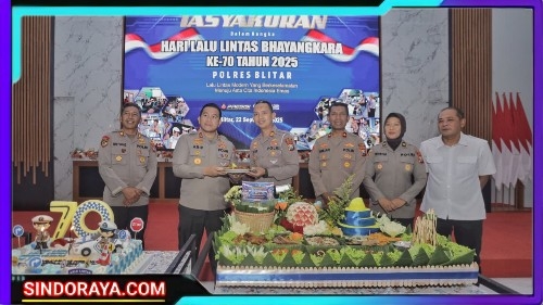 SINDORAYA.COM, Blitar, – Satuan Lalu Lintas (Satlantas) Polres Blitar menggelar acara syukuran dalam rangka memperingati Hari Ulang Tahun (HUT) Lalu Lintas Bhayangkara ke-70.Kegiatan syukuran yang berlangsung di Aula Polres Blitar ini diikuti langsung oleh Kapolres Blitar, AKBP Arif Fazlurrahman, para Pejabat Utama (PJU), serta seluruh personel Satlantas Polres Blitar, Senin (22/9/2025).