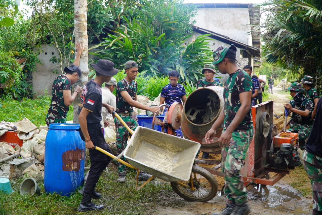 Kehadiran anggota Polsek bersama Satgas TMMD di lokasi kegiatan fisik menjadi bukti nyata semangat gotong royong dan kekompakan aparat keamanan dalam mendukung pembangunan di wilayah pedesaan. Dengan bergotong royong, mereka membantu proses pengadukan dan pengecoran rabat beton agar pekerjaan dapat selesai tepat waktu dan hasilnya maksimal.
