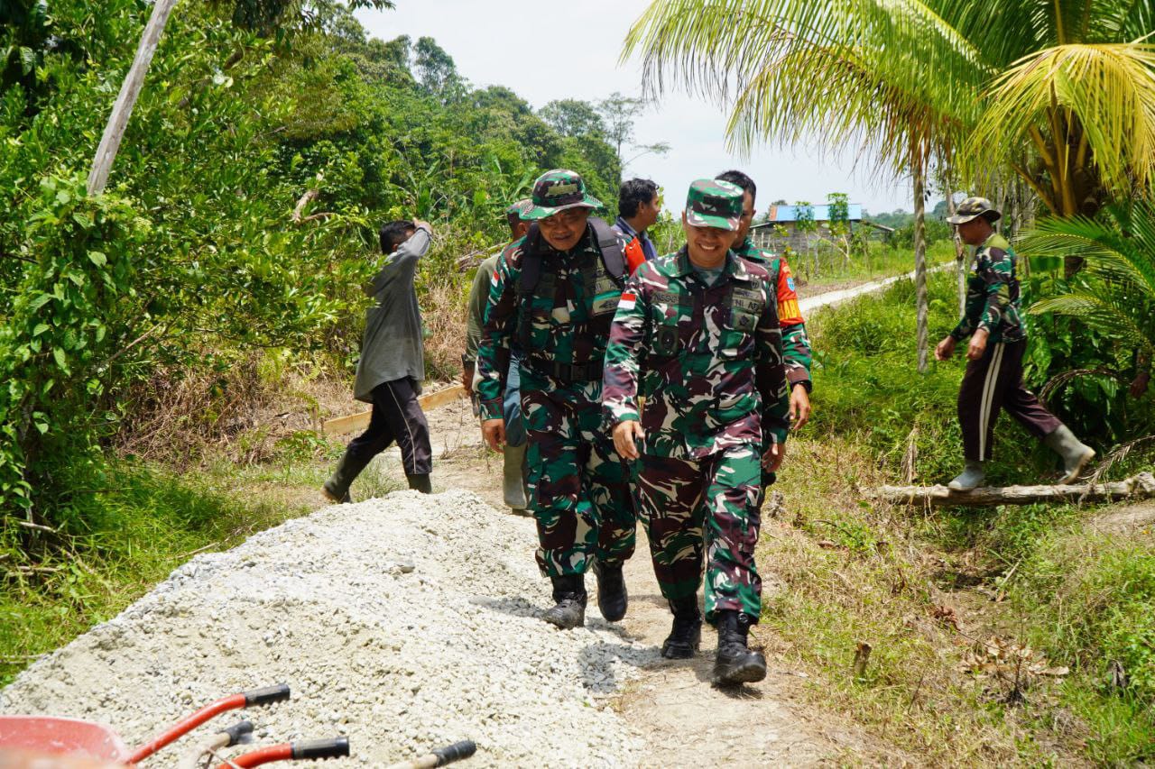 Peninjauan ini dilakukan untuk melihat secara langsung progres pelaksanaan pekerjaan fisik yang sedang dikerjakan oleh Satgas TMMD bersama masyarakat, seperti pembangunan jalan, rehab MCK sekolah, serta perbaikan rumah tidak layak huni (RTLH).