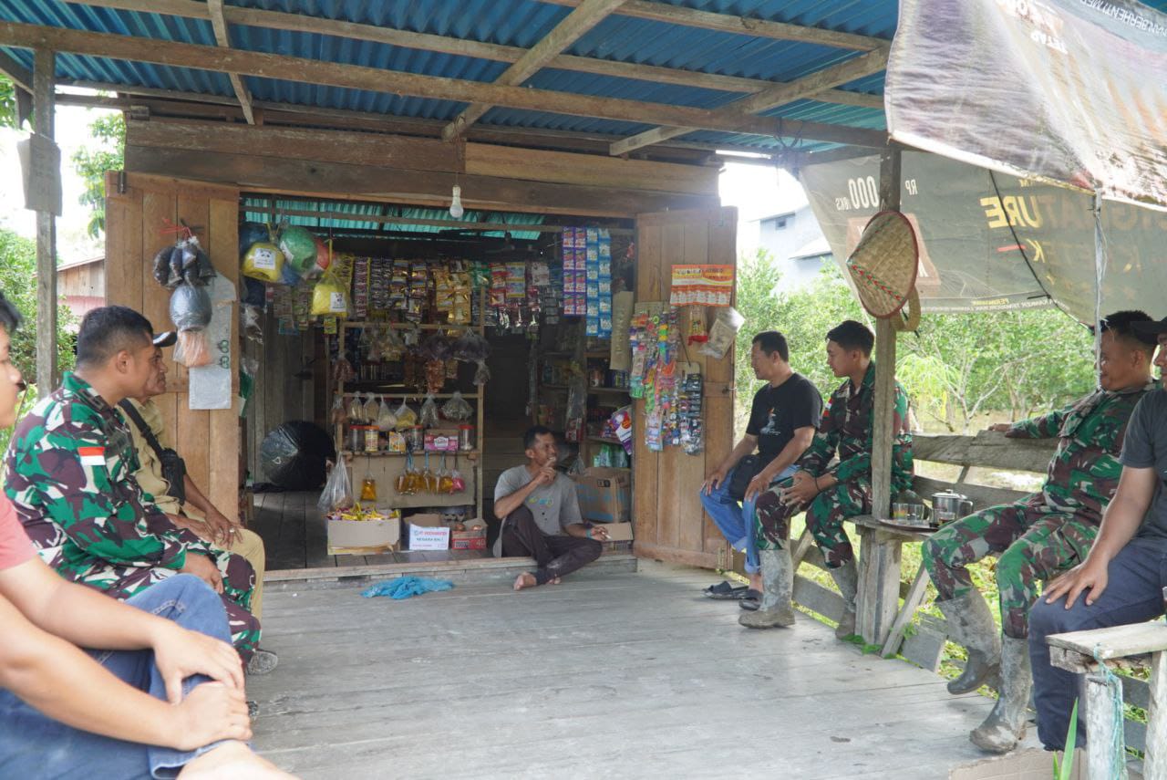 Dansatgas TMMD Ke-126 Kodim 1208/Sambas Ngobrol Santai di Warung Sembako Bersama Kades Ratu Sepudak