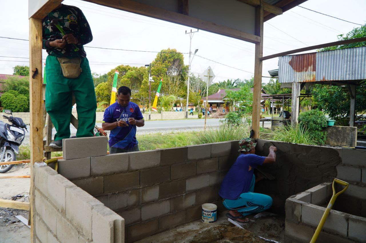 Pembangunan poskamling ini dikerjakan secara gotong royong antara personel Satgas TMMD dan warga setempat. Dengan semangat kebersamaan, proses pemasangan batako berjalan lancar dan hasilnya kini sudah terlihat kokoh.