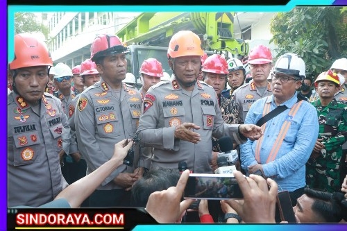 SINDORAYA.COM, Sidoarjo, – Kapolda Jawa Timur Irjen Pol Drs.Nanang Avianto M.Si bersama Pejabat Utama (PJU) Polda Jatim meninjau langsung proses evakuasi korban yang masih tertimbun reruntuhan bangunan Pondok Pesantren (Ponpes) Al Khoziny, Buduran, Sidoarjo, pada Jumat (3/10/2025).