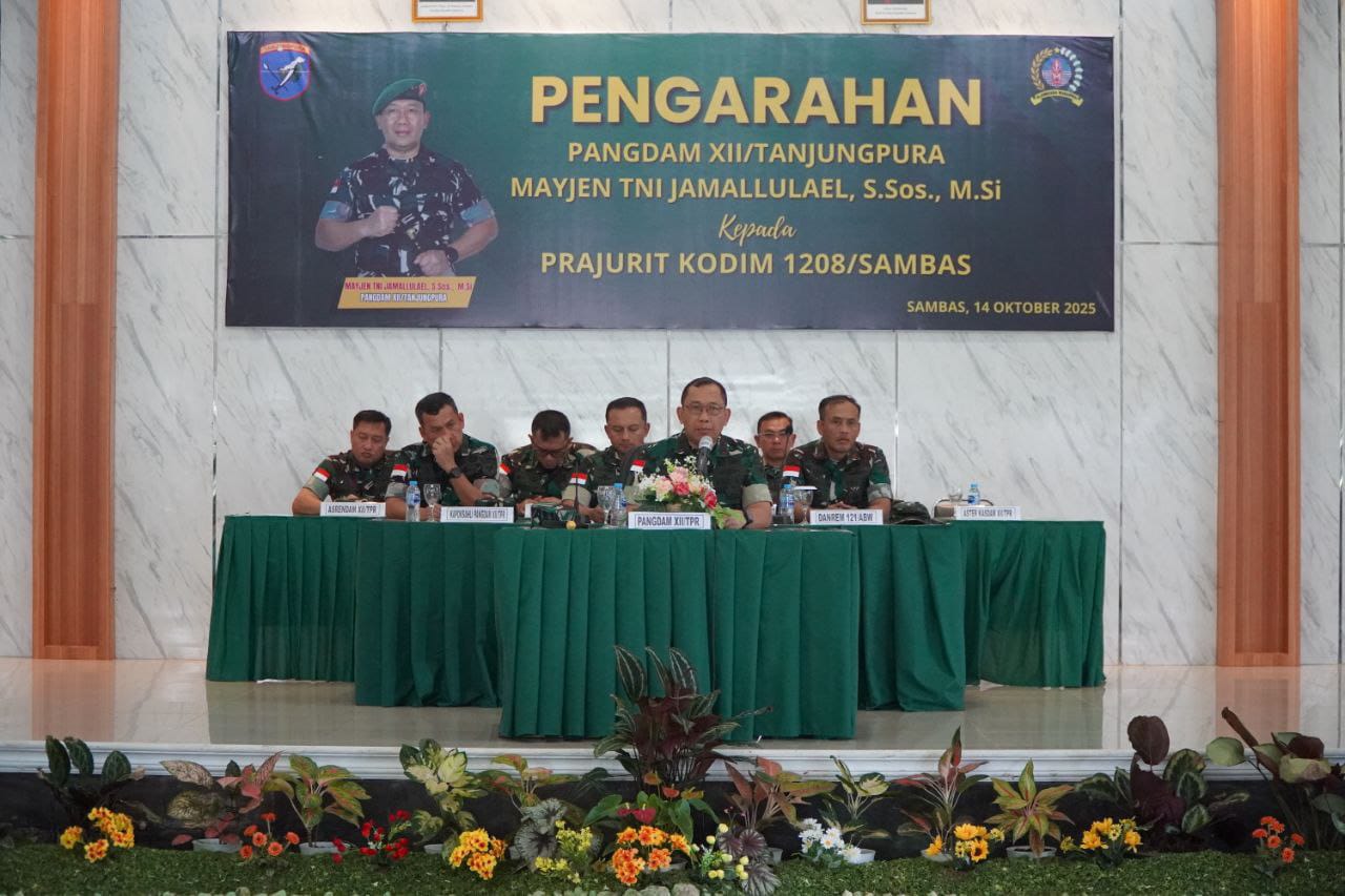 Sambas – Selain mengunjungi pos-pos pengamanan perbatasan, Pangdam XII/Tanjungpura Mayjen TNI Jamallulael, S.Sos., M.Si., dalam kunjungan kerjanya juga menyambangi Kodim 1208/Sambas yang berada di Jalan Tabrakan, Desa Lumbang, Kec. Sambas, Kab. Sambas, Selasa (14/10/2025).