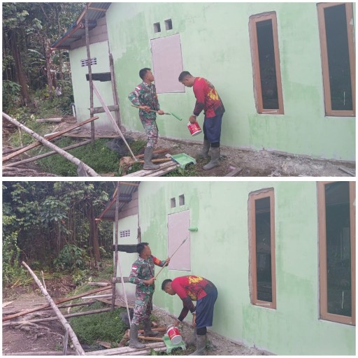 Kegiatan pengecatan dilakukan oleh personel Satgas TMMD bersama warga sekitar secara bergotong-royong. Selain memperindah tampilan rumah, pengecatan juga berfungsi melindungi dinding dari cuaca dan menambah ketahanan bangunan.