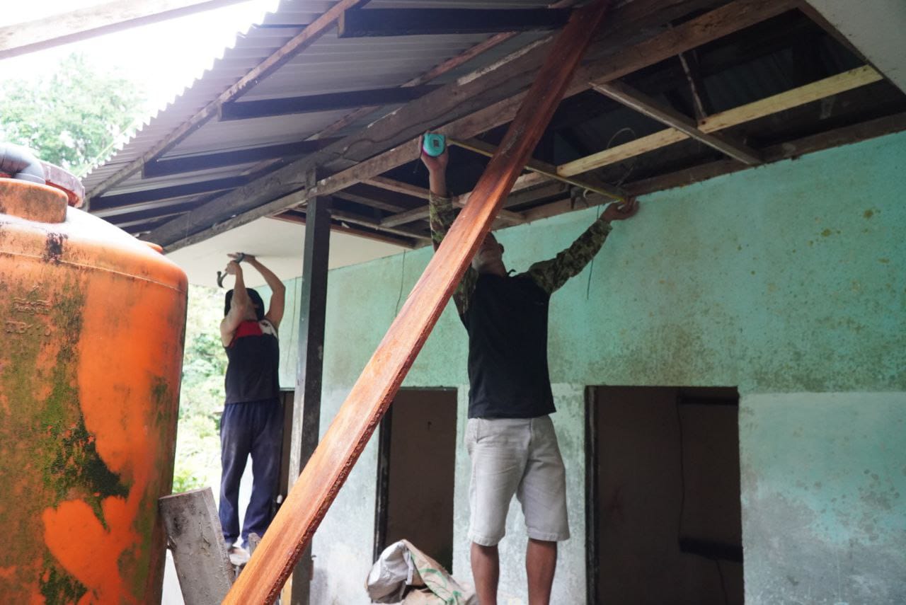 Dengan semangat gotong royong, anggota Satgas TMMD bahu-membahu melaksanakan pekerjaan tersebut. Mereka memastikan setiap tahapan pengerjaan dilakukan dengan cermat agar hasilnya kuat dan rapi, sehingga dapat digunakan dengan nyaman oleh para siswa dan guru di sekolah tersebut.