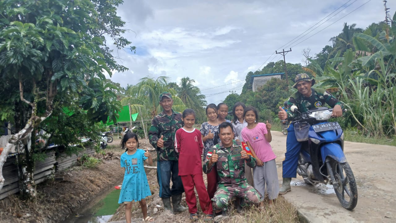 Sambas – Kehadiran Satgas TNI Manunggal Membangun Desa (TMMD) Reguler ke-126 Kodim 1208/Sambas di lokasi kegiatan disambut penuh keceriaan oleh warga, khususnya anak-anak Desa Ratu Sepudak. Sejak kedatangan para prajurit TNI, suasana desa menjadi lebih hidup dan ramai.