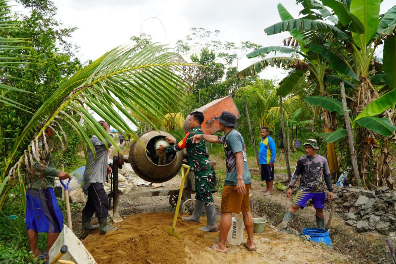 “Dengan menggunakan mesin molen, pekerjaan jadi lebih cepat dan hasil coran lebih bagus. Ini bagian dari upaya kami agar pembangunan berjalan maksimal dan bermanfaat jangka panjang bagi masyarakat,” ujar Sertu Asmo’i salah satu anggota Satgas di lokasi.