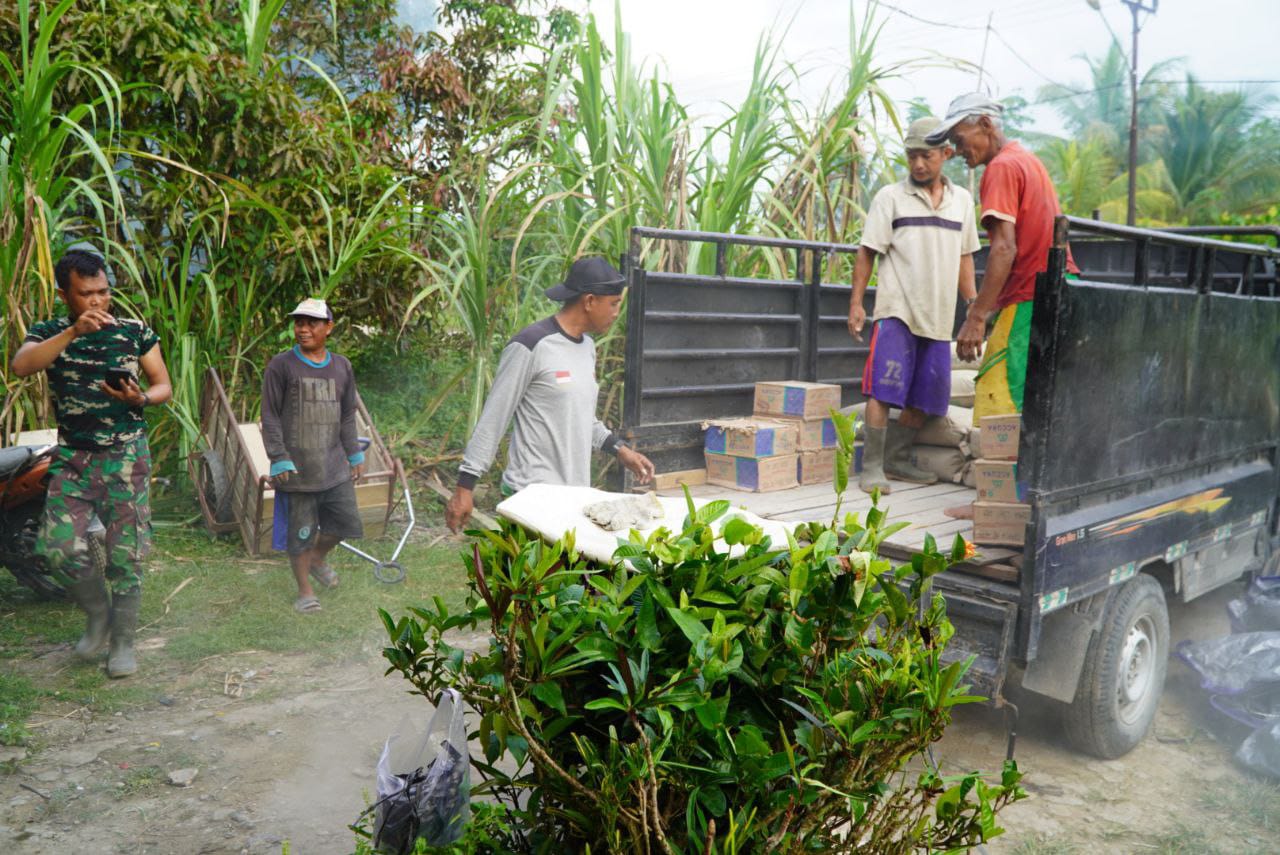 Kegiatan penurunan material tersebut dilakukan secara gotong royong antara personel Satgas TMMD dan warga setempat. Semen yang diturunkan nantinya akan digunakan untuk mempercepat proses pengecoran jalan rabat beton, yang menjadi akses penting bagi masyarakat dalam mendukung aktivitas ekonomi dan sosial.