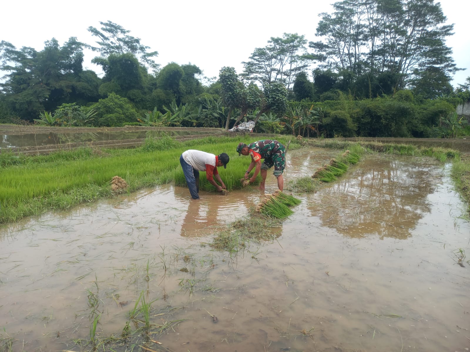 Dalam kegiatan tersebut Serda Edi Prasetiyo terlihat aktif membantu petani mulai dari proses pengolahan lahan hingga penanaman bibit padi. Kehadiran Babinsa di tengah masyarakat menjadi bukti nyata sinergi antara TNI dan warga, khususnya dalam mendukung program pemerintah di bidang pertanian.
