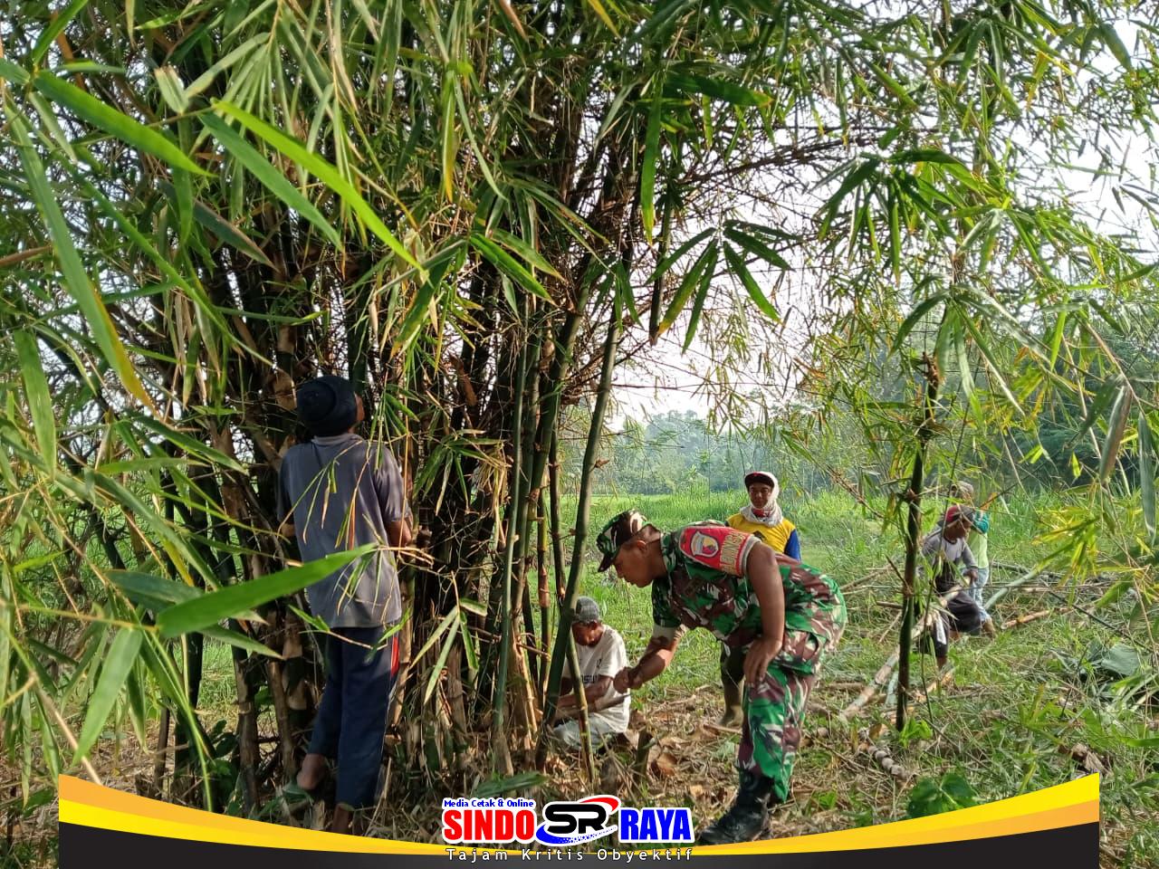 Blitar – Babinsa Kelurahan Bence Koramil 0808/02 Garum Serma Yuda Indra bersama kelompok Tani (Poktan) Margo Utomo melaksanakan kegiatan pembersihan dan pemotongan pohon bambu yang menghalangi akses jalan menuju area persawahan di lingkungan Bendelaren RT. 01 RW. 06 Kelurahan Bence Kecamatan Garum Kabupaten Blitar, Sabtu (29/11/2025).