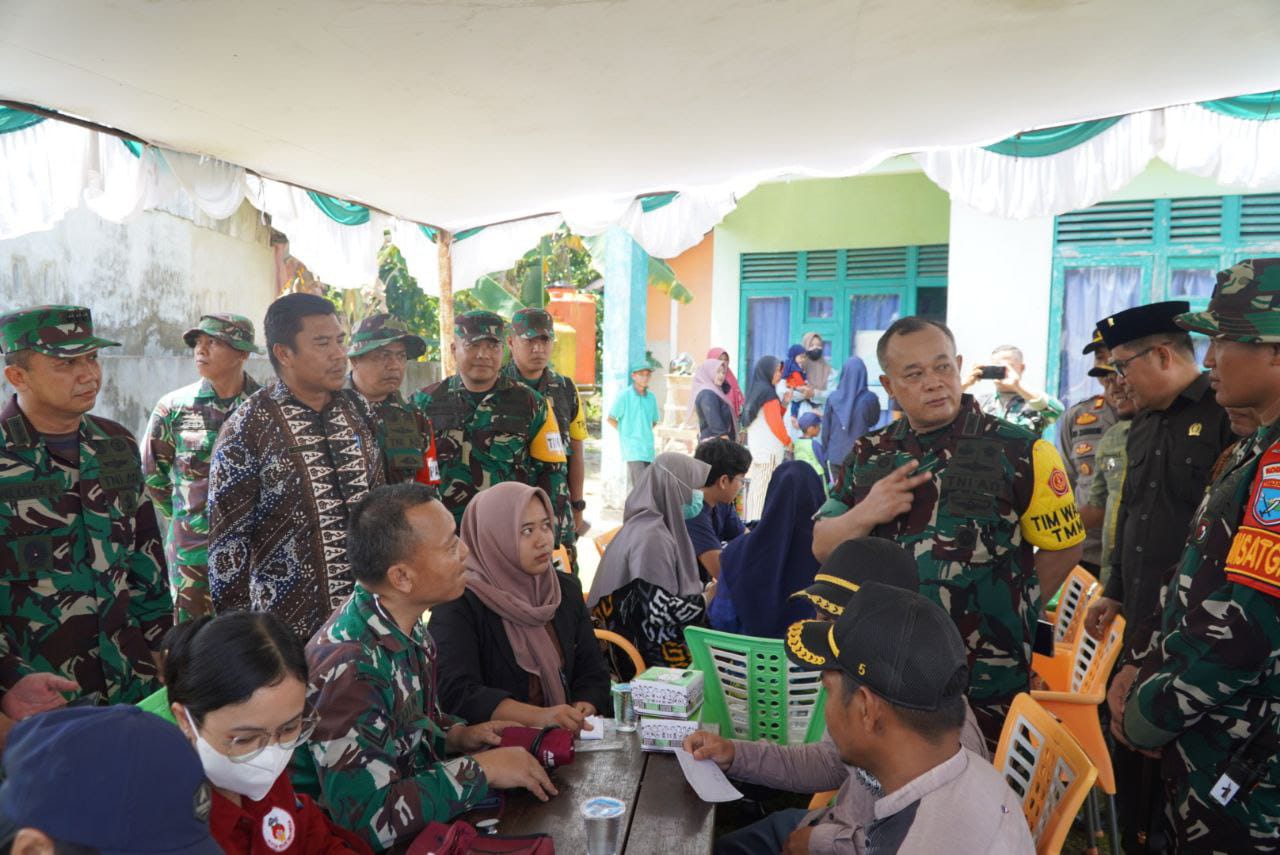 Sambas – Dansatgas TNI Manunggal Membangun Desa (TMMD) Reguler ke-126 Kodim 1208/Sambas mendampingi Tim Pengawasan dan Evaluasi (Wasev) dari Sterad meninjau kegiatan pengobatan gratis yang dilaksanakan di lokasi TMMD, Desa Ratu Sepudak, Kecamatan Galing, Kabupaten Sambas