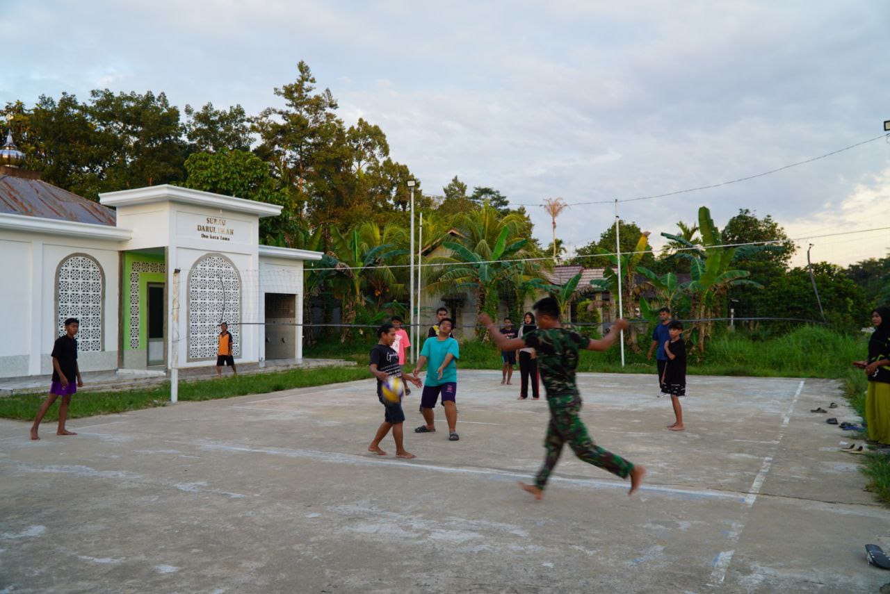Kegiatan olahraga bersama ini diikuti oleh personel Satgas TMMD, aparat desa, serta masyarakat setempat jenis olahraga dilakukan yaitu voli, yang berlangsung penuh semangat dan kebersamaan.