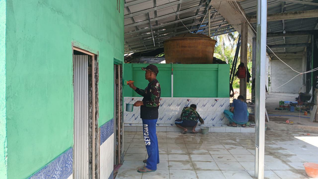 Satgas TMMD Kodim 1208/Sambas Bersihkan Tempat Wudhu Masjid Jamuatul Muslimin Hasil Program TMMD