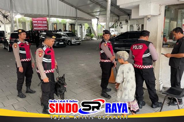 Dalam pelaksanaannya, personel Ditsamapta Polda Jatim mengerahkan satwa K9 untuk melakukan pemeriksaan menyeluruh di area dalam dan sekitar gereja.