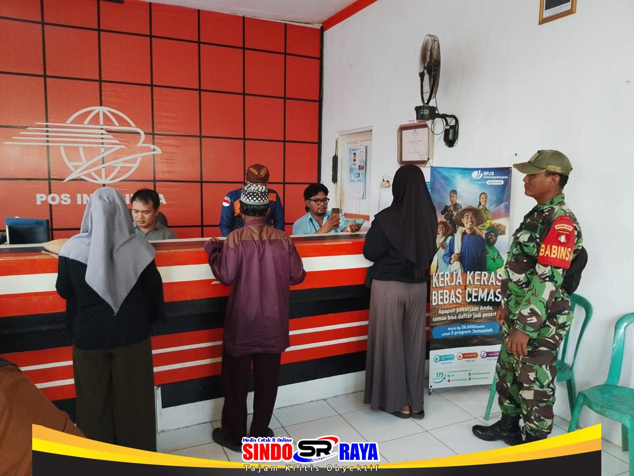 Dalam kegiatan tersebut, tampak salah satu Babinsa yakni Sertu Sufi’i membantu petugas Kantor Pos dalam mengarahkan warga penerima manfaat, mengatur alur antrean, hingga memeriksa kembali kecocokan data penerima agar bantuan tersalurkan tepat sasaran.