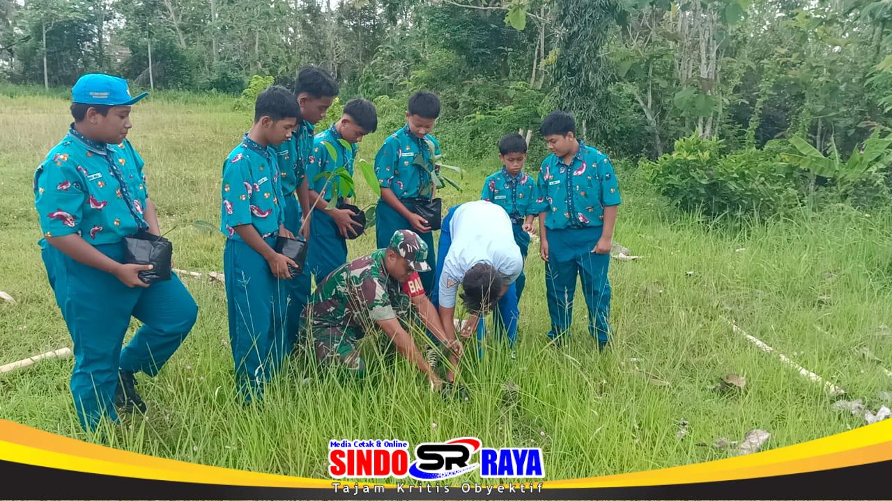 Blitar – Babinsa Desa Ngeni Subramil Wonotirto Koramil 0808/09 Sutojayan Serda Aga Panoto bersama para siswa SMPN 2 Wonotirto Desa Ngeni melaksanakan kegiatan penanaman pohon trembesi, Selasa (6/1/2026). Kegiatan ini merupakan bagian dari upaya mendukung program Manunggal Alam yang bertujuan menjaga kelestarian lingkungan sejak dini.