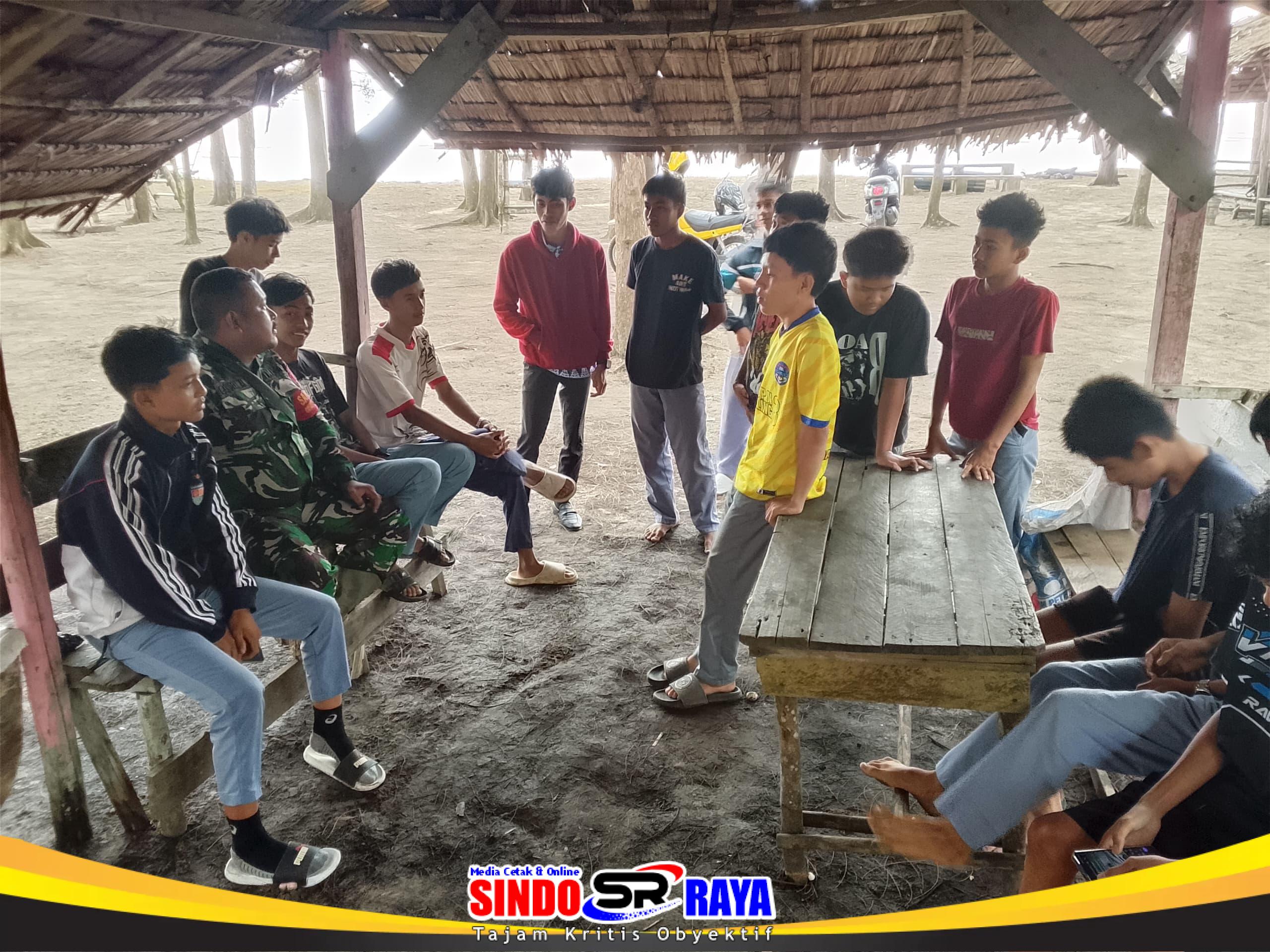 Tanah Hitam – Babinsa Desa Tanah Hitam Koramil 08/Paloh Kopda Catra melaksanakan kegiatan komunikasi sosial (Komsos) bersama para pemuda yang sedang berlibur di kawasan pantai wilayah Desa Tanah Hitam, pada Jumat (16/01/26).