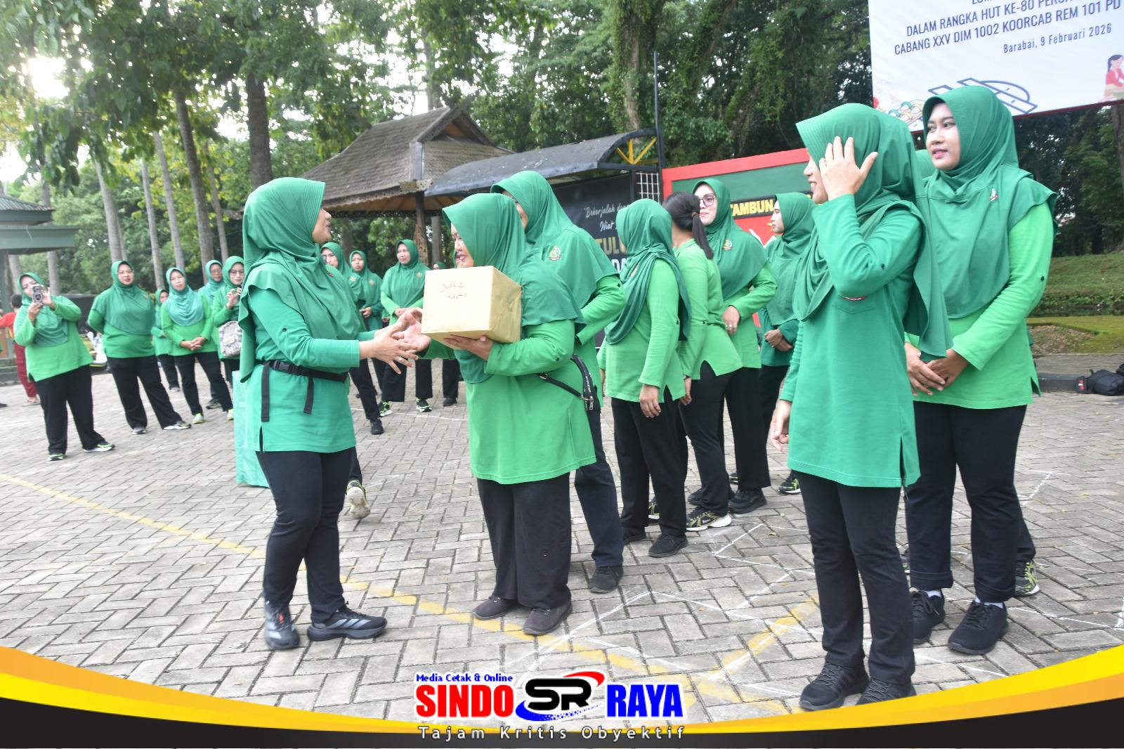 BARABAI – Dalam rangka menyambut Hari Ulang Tahun (HUT) ke-80 Persit Kartika Chandra Kirana Tahun 2026, Persit Kartika Chandra Kirana Cabang XXV Dim 1002 Koorcab Rem 101 PD XXII/Tambun Bungai menggelar lomba permainan tradisional di Lapangan Apel Makodim 1002/Hulu Sungai Tengah, Senin (9/2/2026).