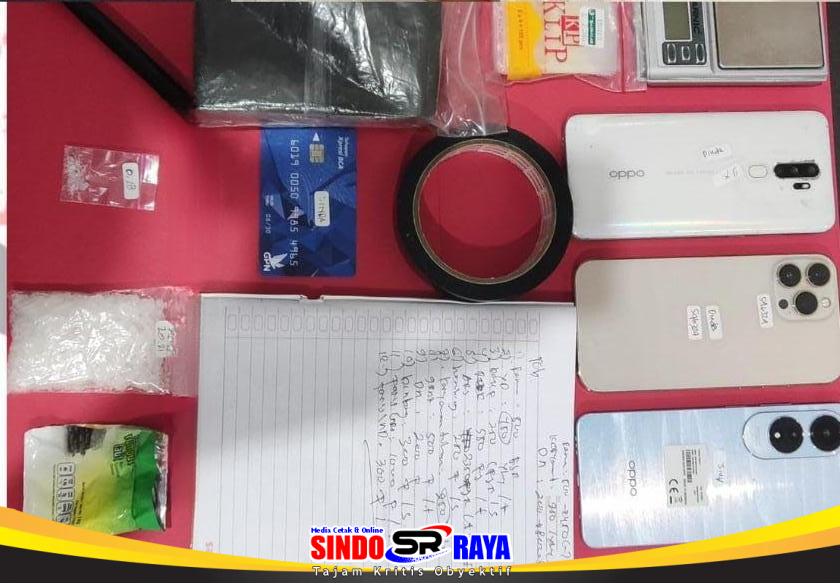 Dalam penggerebekan tersebut, polisi menyita satu kantong plastik berisi kristal putih diduga sabu seberat 19,504 gram. Selain itu, petugas juga mengamankan klip plastik kosong, bungkus aluminium, timbangan elektrik warna silver, alat hisap dari sedotan, buku catatan, satu bungkus makanan ringan, kartu ATM, serta tiga unit telepon genggam.