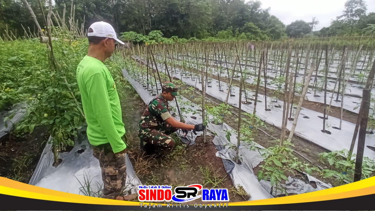 Pendampingan tersebut dilakukan kepada salah satu warga binaan, Bapak Arifin, yang tengah mengelola kebun tanaman tomat dan cabai besar. Kegiatan ini merupakan bagian dari peran aktif TNI AD melalui aparat kewilayahan dalam mendukung program ketahanan pangan nasional sekaligus mempererat kemanunggalan TNI dengan rakyat.