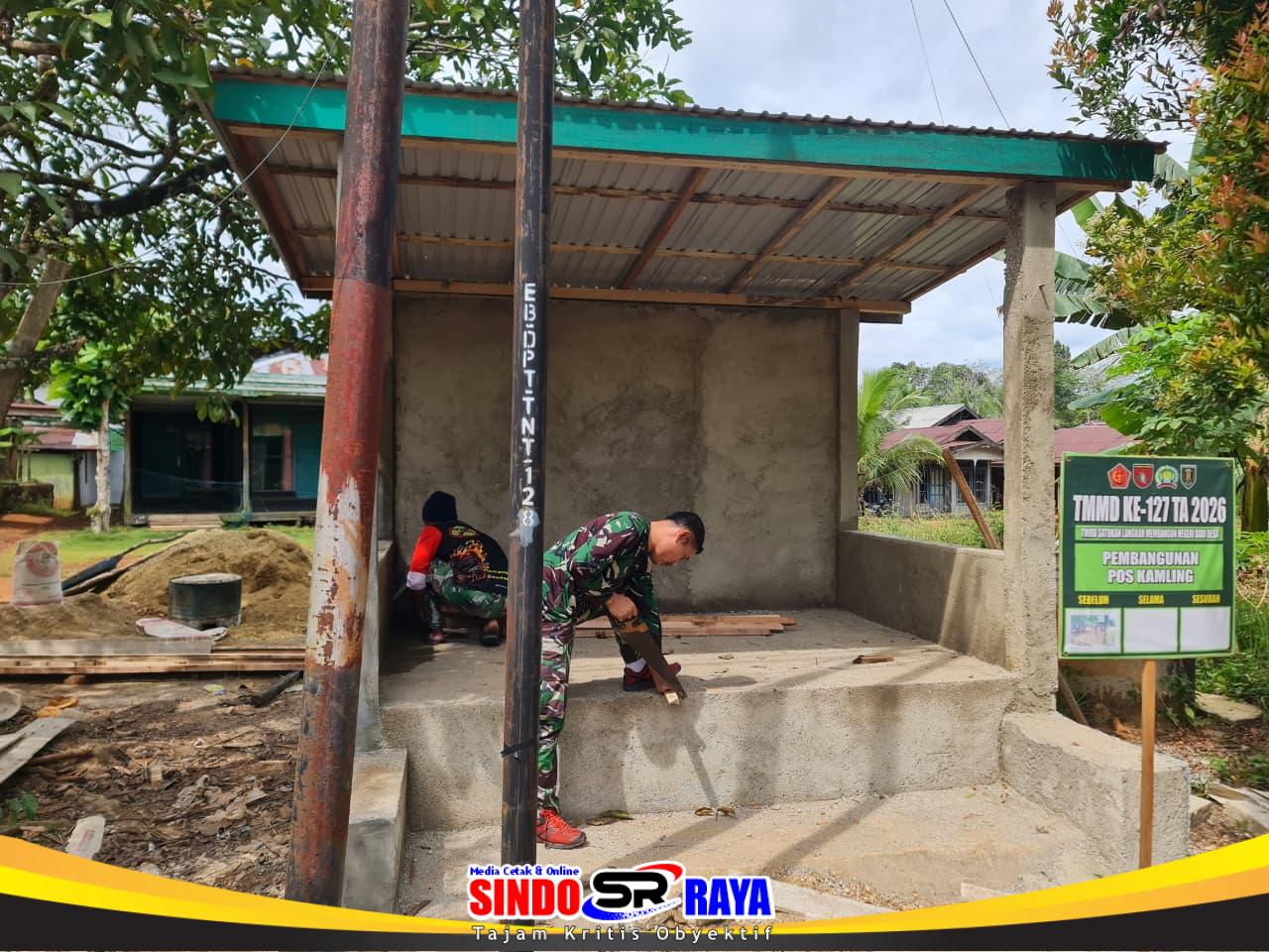 Tabalong – Semangat gotong royong terlihat dalam kegiatan pembangunan Pos Keamanan Lingkungan (Poskamling) di Desa Barimbun. Anggota Satuan Tugas TNI Manunggal Membangun Desa (Satgas TMMD) ke-127 Kodim 1008/Tabalong bersama warga setempat bahu-membahu mengerjakan pembangunan poskamling tersebut pada Jumat (06/03/2026).