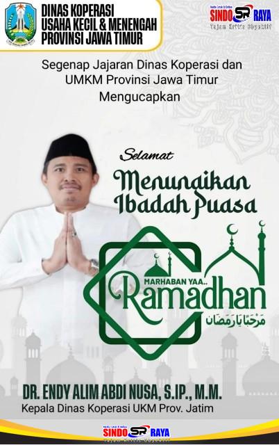 “Segenap jajaran Dinas Koperasi dan UKM Provinsi Jawa Timur mengucapkan Selamat Menunaikan Ibadah Puasa. Marhaban Yaa Ramadhan,” tegas Dr. Endy Alim Abdi Nusa.
