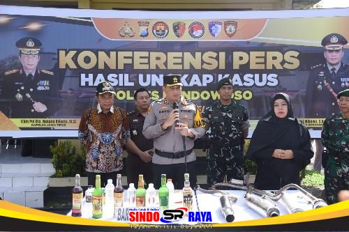 Dalam kegiatan tersebut, Kapolres Bondowoso bersama Forkopimda memusnahkan sejumlah barang bukti hasil penindakan selama operasi cipta kondisi yang dilaksanakan oleh jajaran Polres Bondowoso.