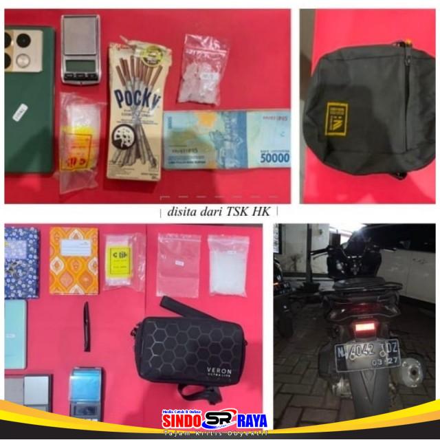 Selain itu, diamankan pula sejumlah barang pendukung seperti timbangan elektrik, ponsel, uang tunai, hingga kendaraan bermotor.