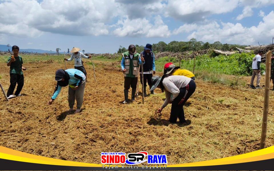 Sambas – Dalam upaya mendukung ketahanan pangan (Hanpangan) di wilayah binaan, Babinsa Desa Sungai Bening Koramil 02/Sejangkung Sertu Hendra Aci melaksanakan pendampingan kepada Gabungan Kelompok Tani (Gapoktan) Bemban dalam kegiatan tanam padi di Cetak Sawah Rakyat (CSR) Desa Sungai Bening, Kec. Sajingan Besar, Kab. Sambas, Kamis (02/04/26).