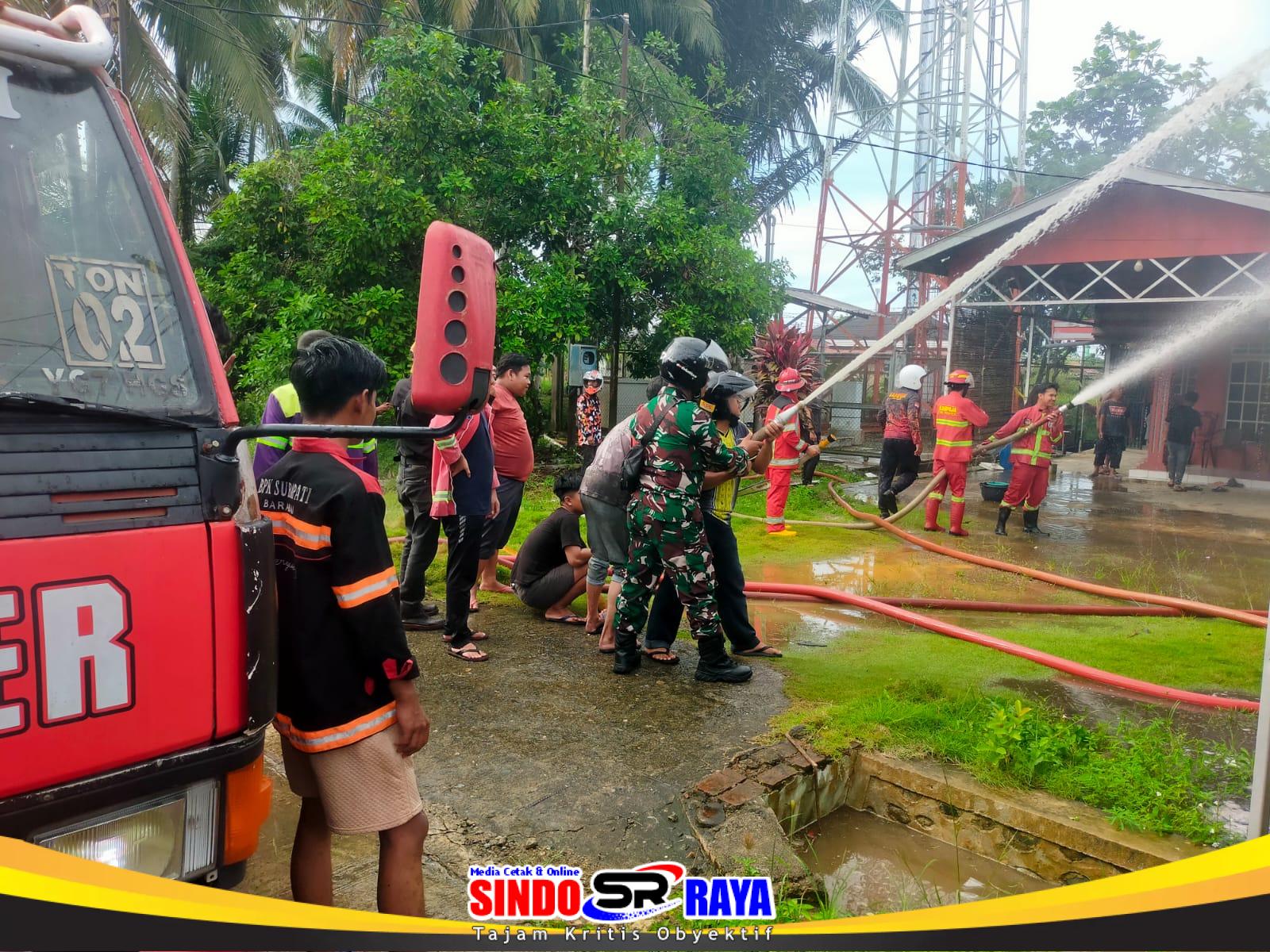 Babinsa Koramil 1002-02/Barabai Serma Sudarwanto yang berada di wilayah binaan turut bergerak cepat mendatangi lokasi kejadian dan membantu proses pemadaman bersama warga, relawan, serta petugas pemadam kebakaran.