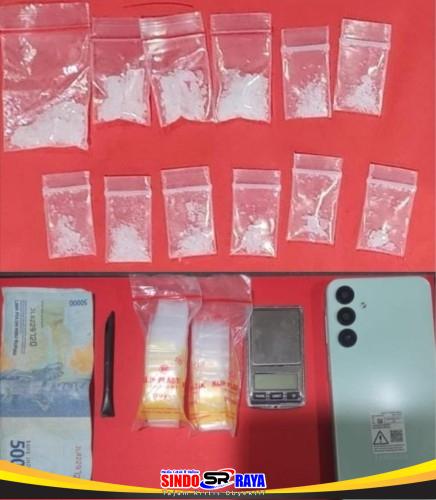 Dalam penangkapan tersebut, polisi menyita sejumlah barang bukti. Di antaranya 12 paket plastik klip berisi sabu dengan berat bruto total 6,77 gram. Kemudian, petugas juga mengamankan satu unit timbangan digital, dua bendel plastik klip kosong, empat alat skrop dari sedotan hitam, serta satu unit telepon seluler yang diduga digunakan untuk komunikasi transaksi.