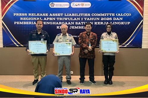 Dalam kegiatan press release Aset Liabilities Committee (ALCo) Regional APBN Triwulan I Tahun 2026, satuan kerja Polres Jember berhasil meraih tiga penghargaan sekaligus dari Kantor Pelayanan Perbendaharaan Negara (KPPN) Jember, Selasa, (14/4/2026)