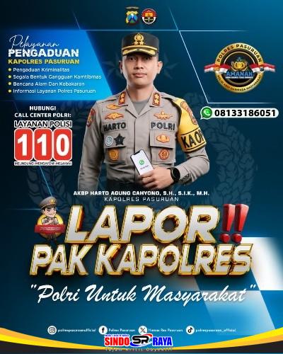Kapolres Pasuruan, AKBP Harto Agung Cahyono, menegaskan bahwa masyarakat dapat memanfaatkan layanan tersebut untuk berbagai kejadian yang membutuhkan penanganan segera.
