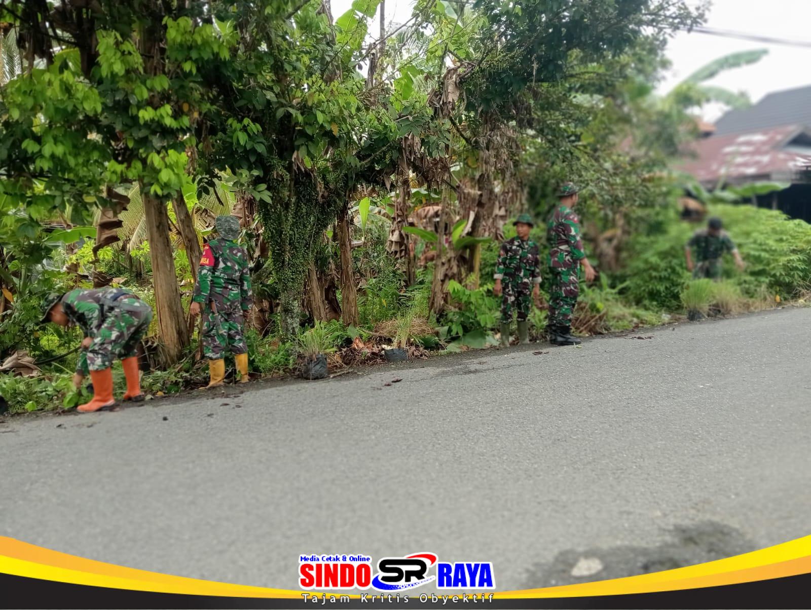 Dalam kegiatan tersebut, anggota Koramil bersama masyarakat setempat bergotong royong membersihkan saluran drainase, memungut sampah, serta merapikan lingkungan sekitar.